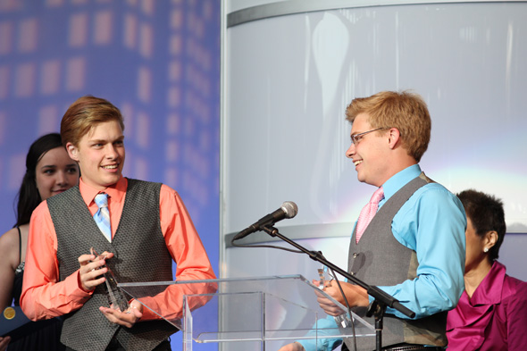 SM East’s February production of The Drowsy Chaperone garnered the theatre department 10 nominations — including Outstanding Overall Production — heading into awards night. And when the envelopes were opened, four Lancers won awards in three categories for their acting abilities. Senior Lily Kaufmann won Outstanding Actress in a Lead Role, sophomore Abby Cramer won Outstanding Actress in a Featured Role and juniors Alec and Justin Armer, twins, won Outstanding Actor in a Featured Role.