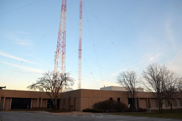 A November public hearing on the SUP that is up for renewal resulted in a number of comments from neighbors near the property who complained about Entercom’s maintenance of the property and the condition of the fence that surrounds most of the acreage. City staff said the high chain link fence topped with barbed wire may date back 60 to 70 years. The towers and first broadcasting building were constructed in the 1930s. (A history of the property, including toppling of the towers by wind follows at the end of the article.)