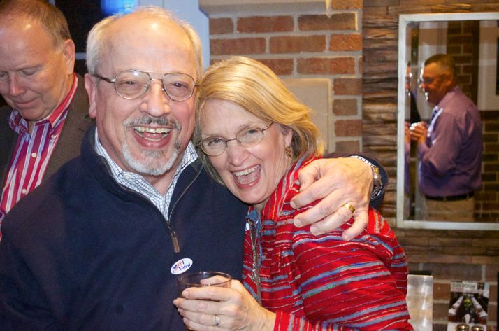 Ron Shaffer and wife, Jeannine, celebrate after hearing the final election results.