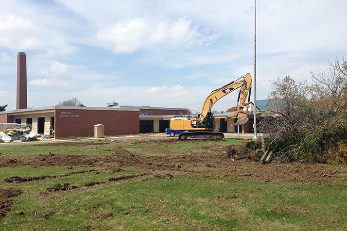 Demolition crews are in the process of tearing down Antioch Middle School to make way for a new central administration center for the Shawnee Mission School District that district leaders say will both increase operational efficiencies and provide students with modern facilities for special education programming.