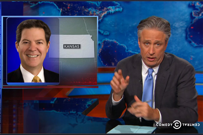 Last Thursday, Jon Stewart used the first eight minutes of The Daily Show to poke fun at a series legislation that’s come out of Topeka this past session — from allowing people to carry concealed firearms with no permit and no training, to the bill on Gov. Brownback’s desk that will further restrict how welfare recipients can spend their money. If you missed the segment last week, you can view it below: