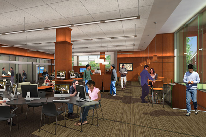 Based in part on the Pryor Learning Commons project at William Jewell College in Liberty, Mo., the project is part of a trend throughout the district to create spaces that more closely mirror the work and study environments common in higher education and business settings. Here’s a look at a rendering of that project: