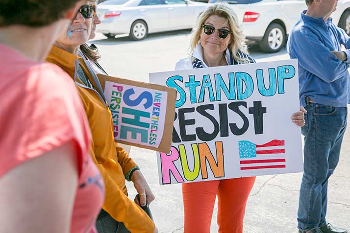 But the majority of the demonstrators were there to protest Yoder’s vote. With District 3 having voted for Hillary Clinton over Donald Trump in November’s presidential election, signs point to Yoder’s seat being competitive in the 2018 election cycle. Indivisible KC, which has been organizing early efforts to put the seat in play, had many representatives on site, including Paffi Flood.