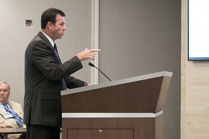 Chief Financial Office Russell Knapp presented the budget to the board of education Thursday.
