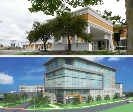 Metcalf 108 would replace the old hotel near I-435 and Metcalf Avenue with a six-story, 150,000-square-foot office building, four-and-a-half-story, 610-stall parking garage and a Staybridge Suites hotel with 123 rooms. The hotel would not receive money from public financing, however.