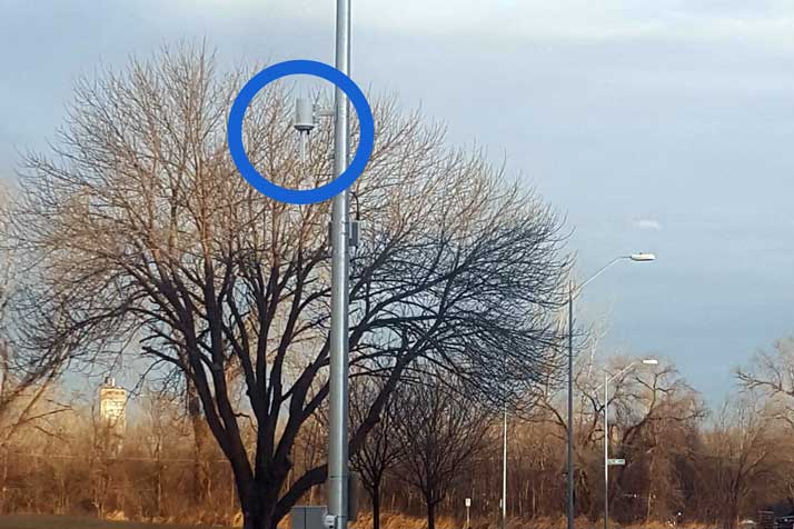 The antenna is roughly the size of a coffee can and attaches to the side of a light pole. The antennae requires its own power source so a KCPL box would also be added to the base of the pole.