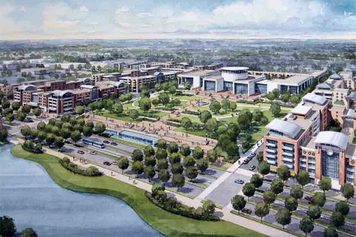 - A new city hall building adjacent to the park that would “provide citizens of Overland Park with a centerpiece for the entire [Metcalf] Corridor.”