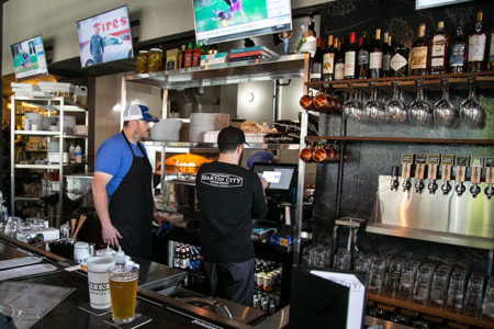 Like at the original location, the Mission Farms operation features a scratch kitchen, a huge pizza oven, and 16 Martin City craft beers on tap.