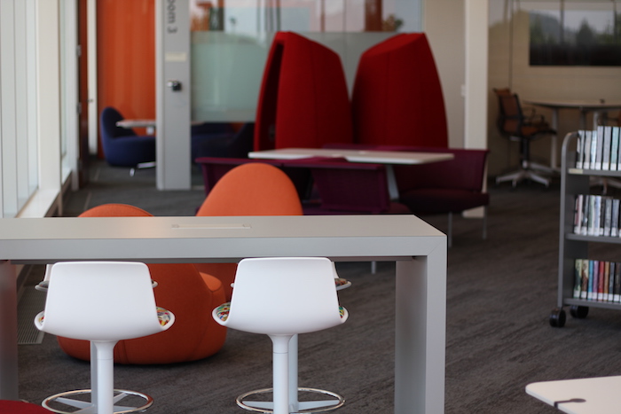 Nearly every sitting area has an electric outlet for patrons to plug in their devices. Some spaces are designed for study, others for private reading, and still others for group activities like board games (which are coming soon). The seating was all designed for flexible use, based on patrons’ individual needs, desires, body types and comfort styles, Madrigal said.