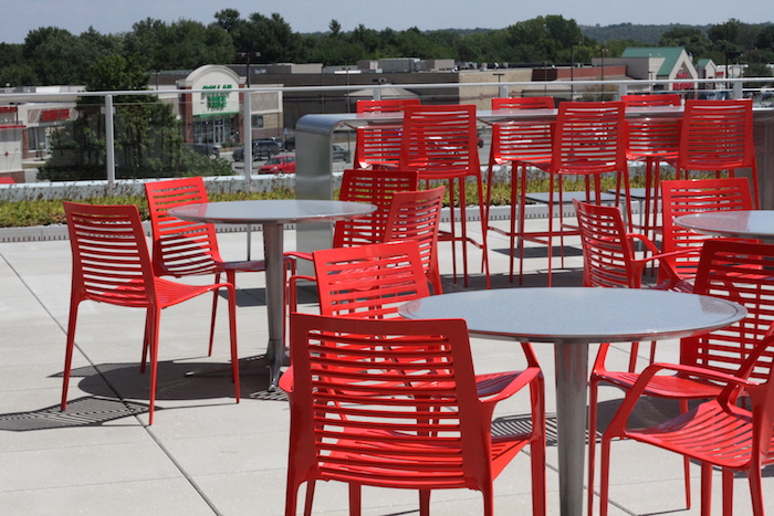 The “piece de resistance” for both Worth and Madrigal is the rooftop terrace, with at least half a dozen picnic tables, drought-resistance native greenery and a view looking east onto the nearby retail development. Benches will soon be installed along the edge of the terrace: