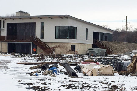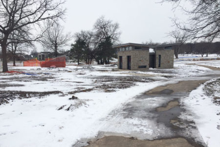 The view from the top of a frosty hill at Meadowbrook Park is bleak. Silt fences are everywhere, as are the mounds of dirt they are keeping in place. Vee-shaped shelters have sprouted in places, but they’re surrounded by crunchy frozen mud. The new clubhouse is standing, but piles of construction material surround it.
