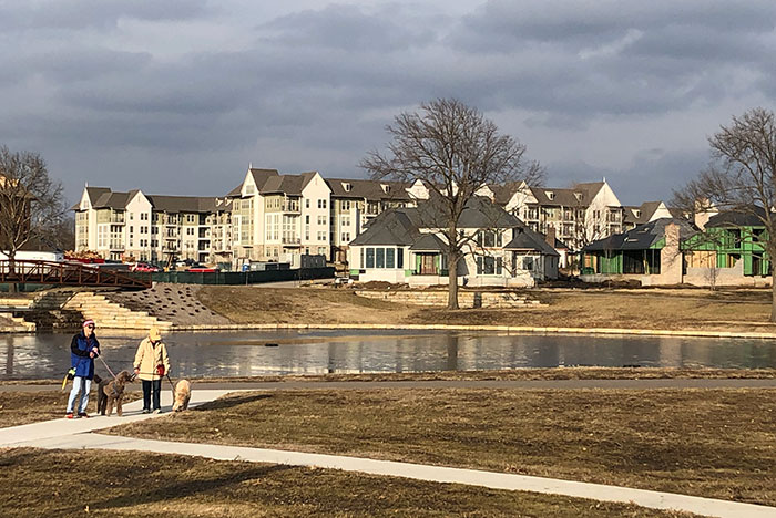 The first spades of earth for Meadowbrook were officially turned in May 2016, after lengthy negotiations between the park district, school district and Prairie Village over its funding. The former golf and country club was to be developed by VanTrust Real Estate into a public/private destination, with the 82-acre park and its ponds bordering apartments and their amenities.