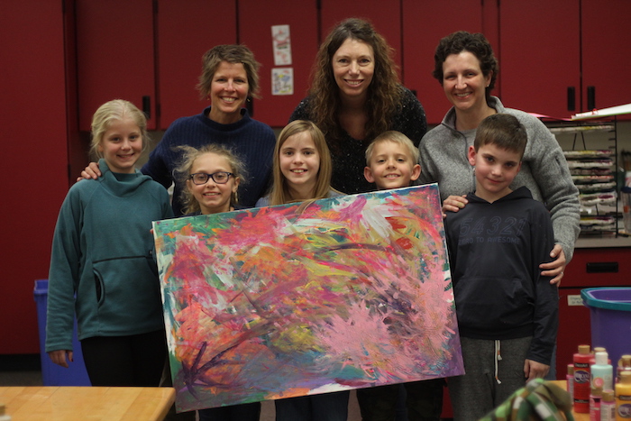 For the project, the students used paint brushes, forks, toothbrushes, hairdryers and even their hands, while spreading and forming the various colors and abstract images in the painting. While working together on the painting, conversation was casual — even when they talked about their mothers’ mastectomies and chemotherapy — because it was their new normal.