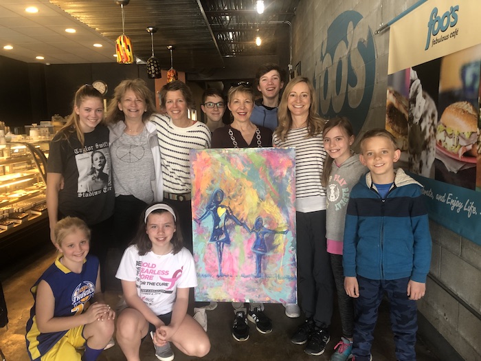 Seven Corinth families participated in the painting: Bean, O’Neil, DeSalvo, Anderson (Latas), Flower, Benditt and Pitts. The artwork will be featured at the Bra Couture KC Fashion Show & Auction 2019 on April 12 at the TWA Museum, Charles B. Wheeler Downtown Airport in Kansas City, Missouri.