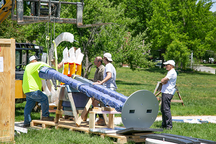 Sarasota, Fla., artist Jorge Blanco was on hand to oversee the installation of his new sculpture, entitled “See Red Run,” which was made possible through the efforts of the Citizens Sculpture Initiative for R Park group, with support from the Roeland Park Arts Advisory Committee and Parks Committee.