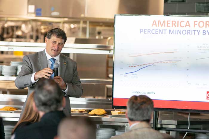 Before a crowd of local elected officials, municipal government staff and business leaders at the Broadmoor Bistro in the district’s Center for Academic Achievement, Fulton’s annual State of the District address, which is put on by the NEJC Chamber, focused on the recently completed strategic planning process and how Shawnee Mission plans to prepare today’s students “for a world that doesn’t exist yet.”