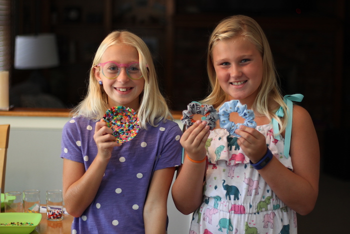 Kinley Wohlgemuth, age 10, and her little sister Rylan Wohlgemuth, age 8, own and operate Shawnee Sisters, in which they make and sell a variety of crafts. Rylan makes and bakes bead bowls, and Kinley makes scrunchies. They’ll have their first vendor booth tomorrow at the Shawnee KidsFest Business Fair.
