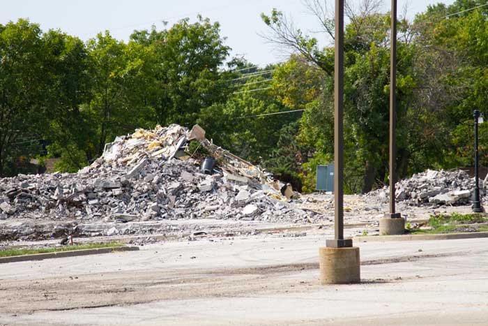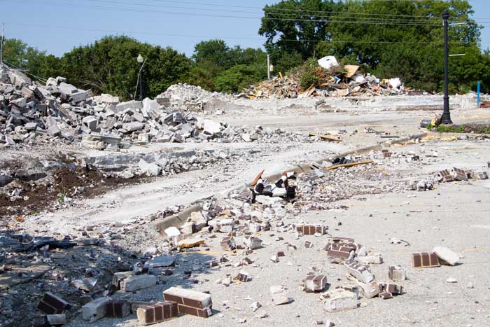 Over the past few weeks, crews have demolished the northern portion of the shopping district on the northeast corner of 75th Street and Quivira Road. The Shawnee city council last year allowed demolition to take place this summer after the developer, MP Westbrooke North LLC, requested an extension.