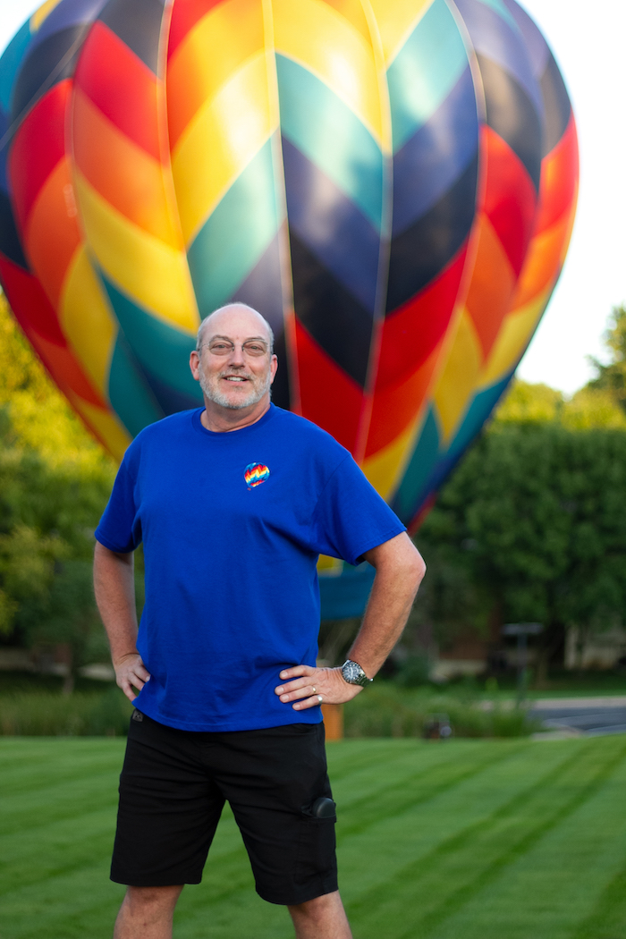 David Reed has a lifelong passion for round, colorful things, some big, some small. That includes his marble collection but it’s much harder to hide his hot air balloons. A hot air balloonist since 1984, Reed is probably most himself when he’s a thousand feet up in the air. Besides ballooning, Reed engages in other hobbies, including stain glass and marble collecting (“I like round, colorful things, what can I say?”) A certified dental technician, Reed runs his own company, Cirrus Prosthetics. He lives in Shawnee with his wife of 30 years, Carmen Reed. They have three children/crewmembers, two of whom are still living at home.