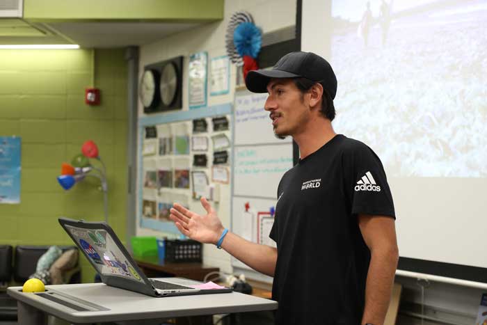 Ten years later, he stood before a classroom of students at Christa McAuliffe Elementary, urging them to look around, see the damage caused by plastic, and make a change in their world.