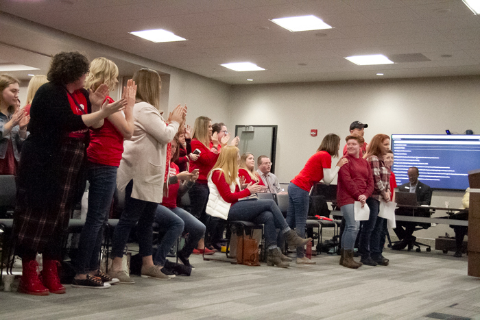 Fulton announced earlier in the meeting that the National Education Association-Shawnee Mission and administration had come to an agreement that will provide a $45 per month per employee contribution toward health insurance premiums starting Jan. 1. Many teachers will see health insurance costs increase at the beginning of 2020, and without a contract approved, they would have born the entire brunt of the increase without any offset from the district.