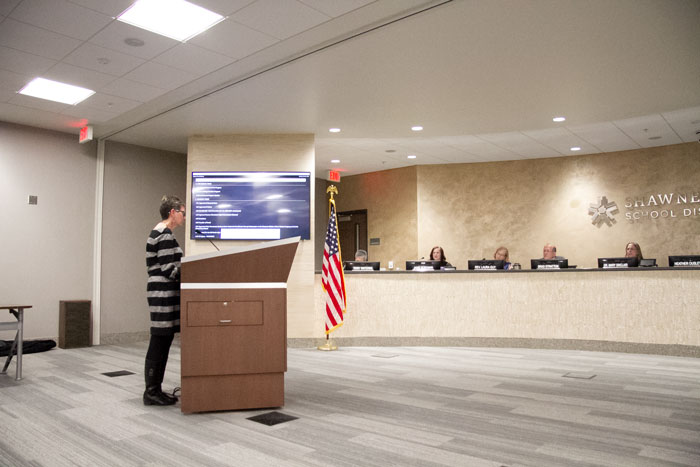 “Now is the time to find a way to move forward together in the best interests of our students and our staff and the district as a whole,” she said. “Our patrons need to see that all parties, NEA-Shawnee Mission, the board of education and district leadership are committed to work collaboratively to find common ground. And I’m here this evening to let you know that NEA-Shawnee Mission is willing to come together so that we can get together and move forward.”