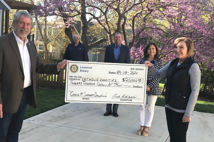 In response to the COVID-19 crisis, the Leawood Rotary Club is donating a total of $40,000 to two local faith-based nonprofit organizations to help neighbors in need in the Kansas City metropolitan area. The club is donating $20,000 to Catholic Charities of Northeast Kansas, and $20,000 to Church of the Resurrection Ministries.