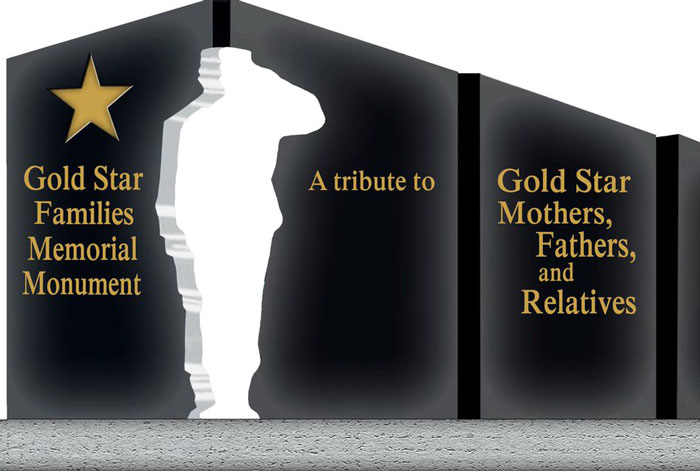 The 7-foot tall monument will be two-sided, with the following words on one side: “Gold Star Families Memorial Monument, a tribute to Gold Star Families and Relatives who have sacrificed a Loved One for our Freedom.” On the other side, there will be panels that depict homeland, family, patriot and sacrifice. A silhouette cut out will represent a missing loved one, as well.
