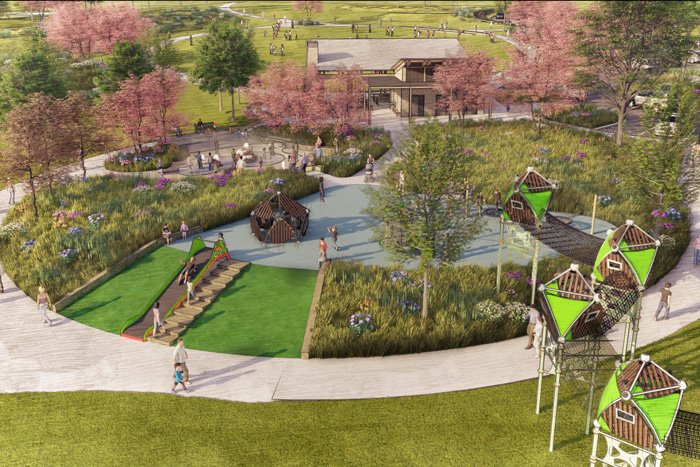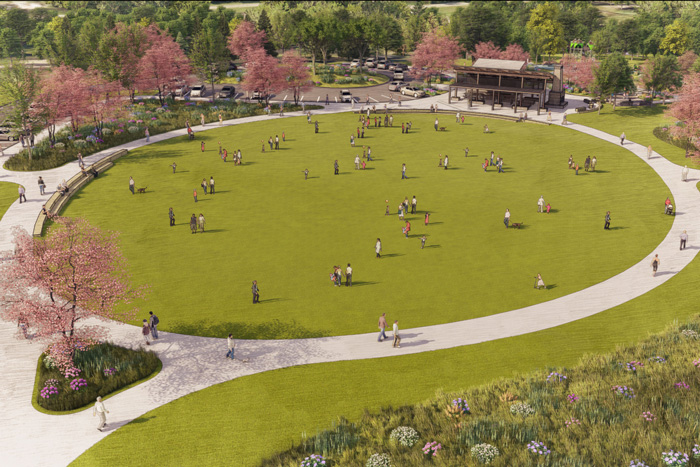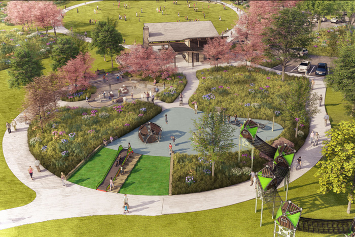 Holman said he hopes residents will enjoy the 60+ person shelter and fireplace, plus the open lawn area for flying kites or kicking a ball around. The play area has swings, slides, a merry-go-round and musical instruments. Plus, the play areas feature inclusive elements and accessibility for different age groups and abilities. He’s also proud of the plans to keep the native habitat intact on the northern portion of the park.