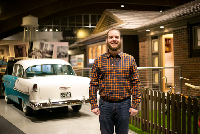 After finishing two history degrees, Andrew R. Gustafson wasn’t sure what to do for a career. He didn’t want to become a professor. But after he helped a living founder catalog his collection of 70,000 artifacts in Texas, eventually helping him create exhibits for a new museum, suddenly things clicked and he found his calling. His family wasn’t surprised; they often enjoyed watching him sort and catalog his toys spread across the living room. As curator of interpretation for the Johnson County Museum, Gustafson develops and designs plans for the temporary and digital exhibits, like the most recent one called “Rising to the Challenge: Suburban Strength in Difficult Times.” He also leads special tours, manages the museum’s social media platforms and blogs, and plans adult programming.