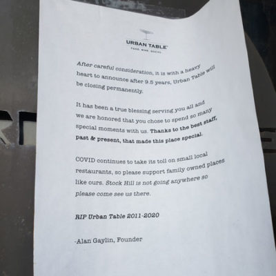In a letter posted on the front door of Urban Table, 8232 Mission Rd, founder Alan Gaylin said that after more than nine years in business, the restaurant was permanently closed.