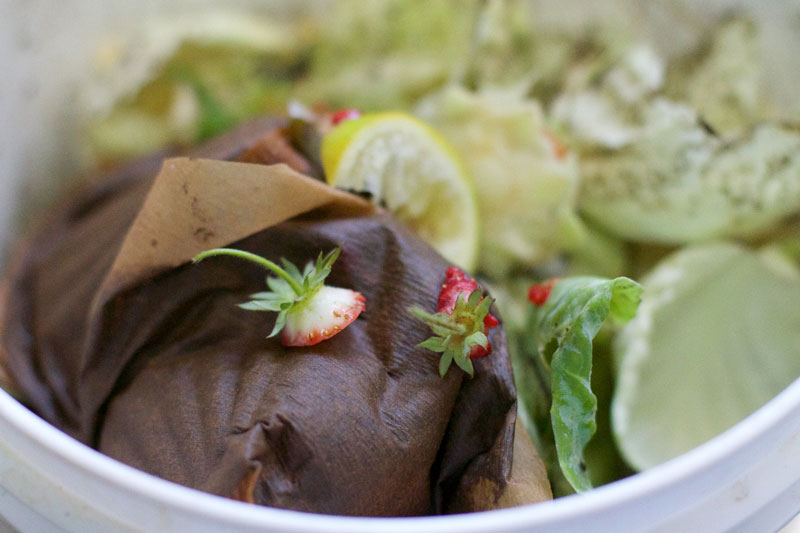 The company gives each customer a 5-gallon bucket for food scraps, collects it weekly or every other week, cleans the bucket and lid and replaces the compostable liner.