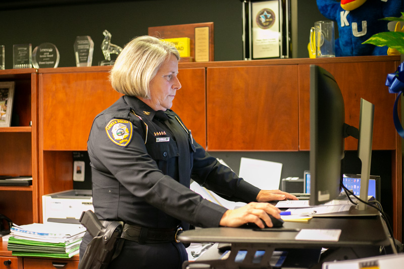 Leaning over the desk of her new office at headquarters, Lenexa Police Chief Dawn Layman looked darkly up at the television.