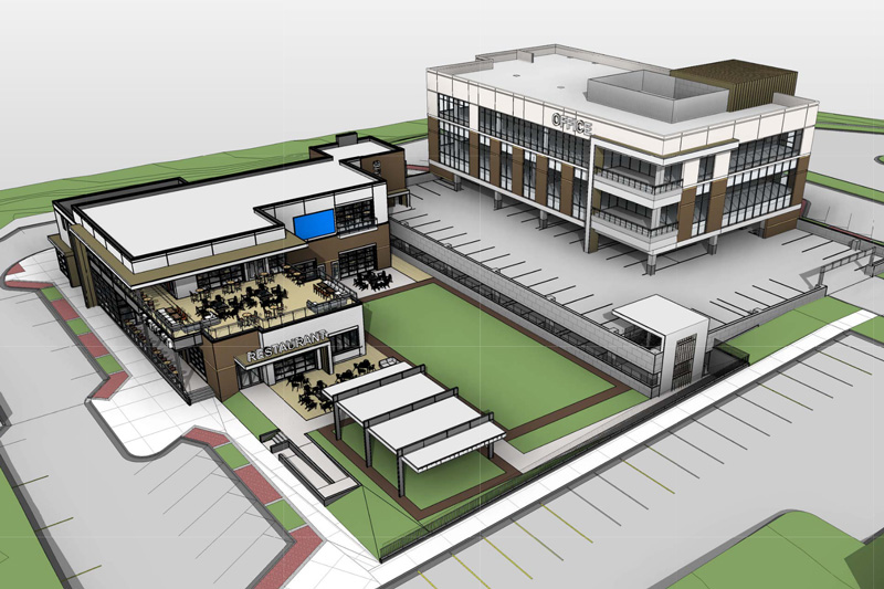 Meanwhile, the office portion of the project includes two levels of parking and two floors of office space totaling about 24,000 square feet of floor area.