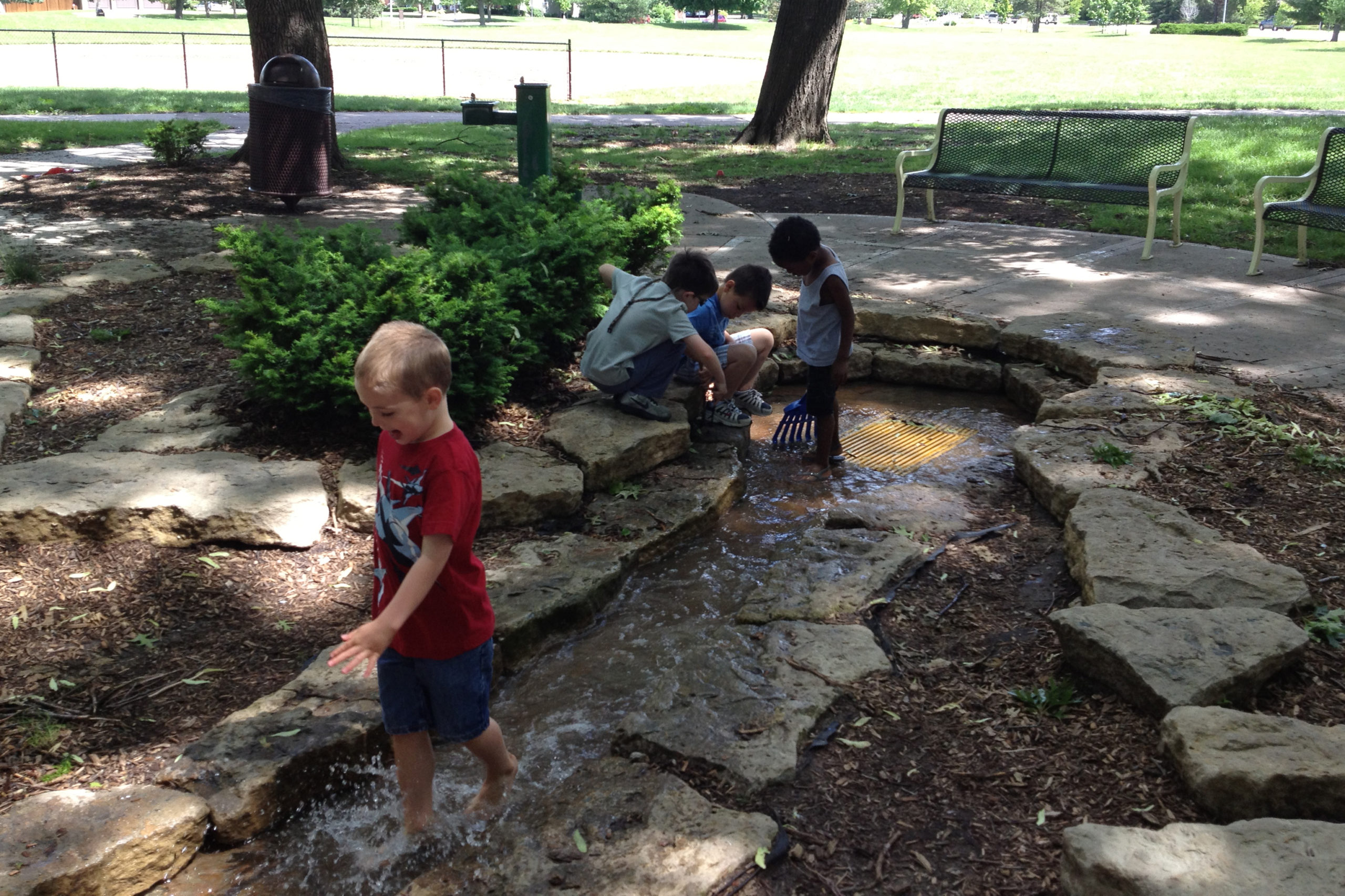 Reader Jan Atkins is among those who swear by the appeal of Franklin Park in Prairie Village. The playground itself is relatively small, but a major upgrade a decade ago included the development of an adjacent natural play area that includes a stream. “[There] is lots of shade as well as picnic tables, a sandbox, logs to walk on, a stream in which to float boats (or leaves), and a nice series of short and long sidewalks for both little feet and big feet to pedal or walk,” Atkins said.