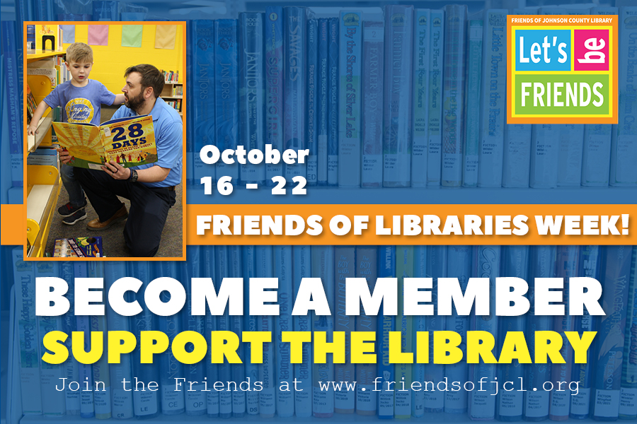 Celebrate National Friends of Libraries Week with the Friends of Johnson County Library. Help meet our goal of 70 new members when you join today! The Friends sell used books so the Library can buy new ones. Join Friends like Andy Akright, pictured here with his son Robbie, and support your community library.
