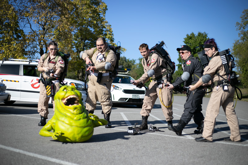 Group members in full Ghostbuster regalia, including proton packs, appear as an attraction for events, kids’ parties, fundraisers and more. Before the busy Halloween season began, they turned up at Planet Comicon KC this past summer.