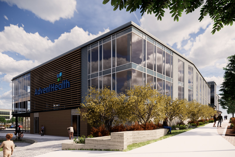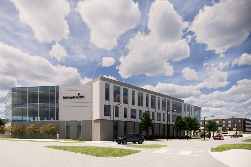 Located on about 25 acres at the northwest corner of West 87th Street Parkway and Renner Boulevard, the AdventHealth Life Campus is set to ultimately include 11 different buildings, including a 100-bed hospital, medical offices, retail and shopping spaces and a hotel.