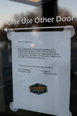 Two years after opening, Plowboys Barbeque has permanently closed its Overland Park location. The last day open for the restaurant at 6737 W. 75th St. was Sunday.
