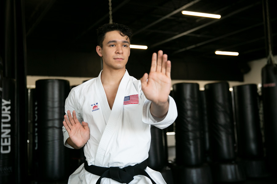 At age 17, he is already an accomplished black belt with nearly nine years of experience.