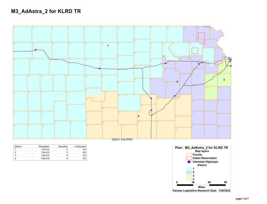 Kansas neither gained nor lost seats — it has four — in the most recent round of reapportionment based on the 2020 U.S. Census. Senate President Ty Masterson, a Wichita area Republican, justified the redistricting by saying that most of the state’s population growth occurred in the Kansas City area, making it impossible to keep all of Wyandotte and Johnson counties together.