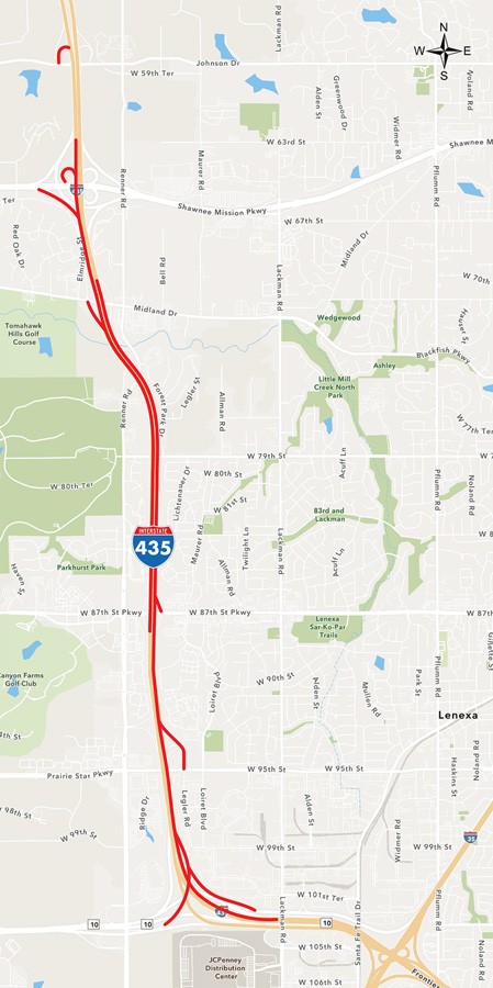 - Vehicles will still be able to access the northbound I-435 ramps at all three of these interchanges
