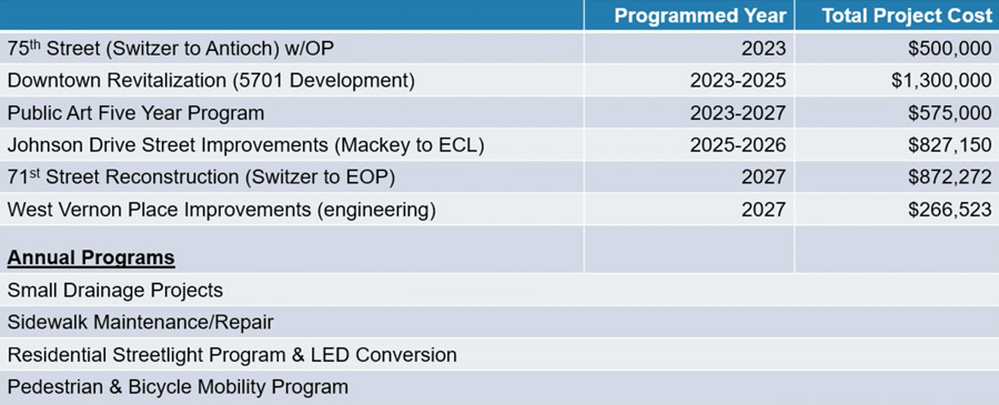 Why now? In recent presentation to the Merriam City Council, city staff shared a draft of the city’s capital improvement program for 2023-27. No action was taken, but city leaders got a first look at the city’s potential priorities for the next few years.