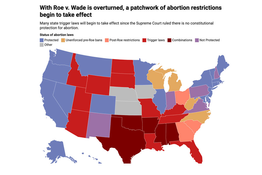 The U.S. Supreme Court on Friday, in a decision overturning the nearly 50-year-old case of Roe v. Wade, ruled that it’s up to each state to determine what, if any, restrictions to impose on abortion access.
