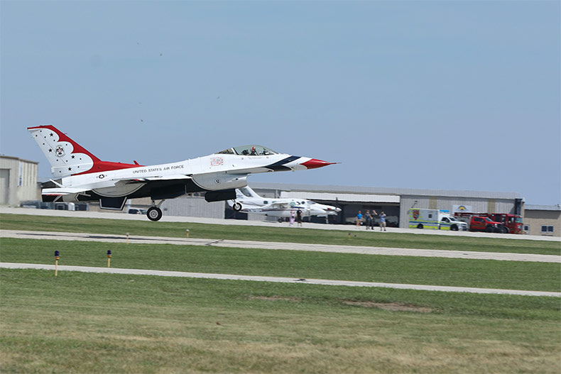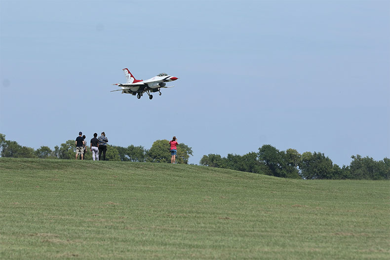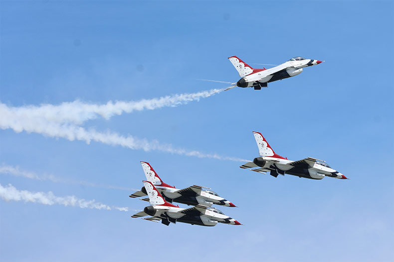 The details: The team flies six F-16 Fighting Falcons during performances.