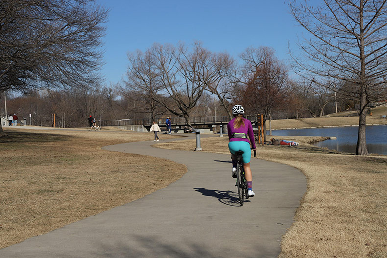 People ride bikes, walk and enjoy the unseasonably nice February weather earlier this week in Sar-Ko-Par Trails Park. It won’t last today. Photo credit Kaylie McLaughlin.
