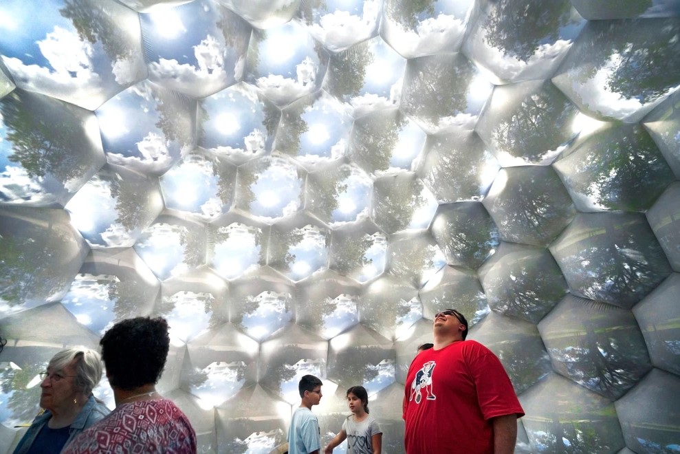 - This immersive dome is made out of 109 adjustable pinhole cameras through observers can look out.