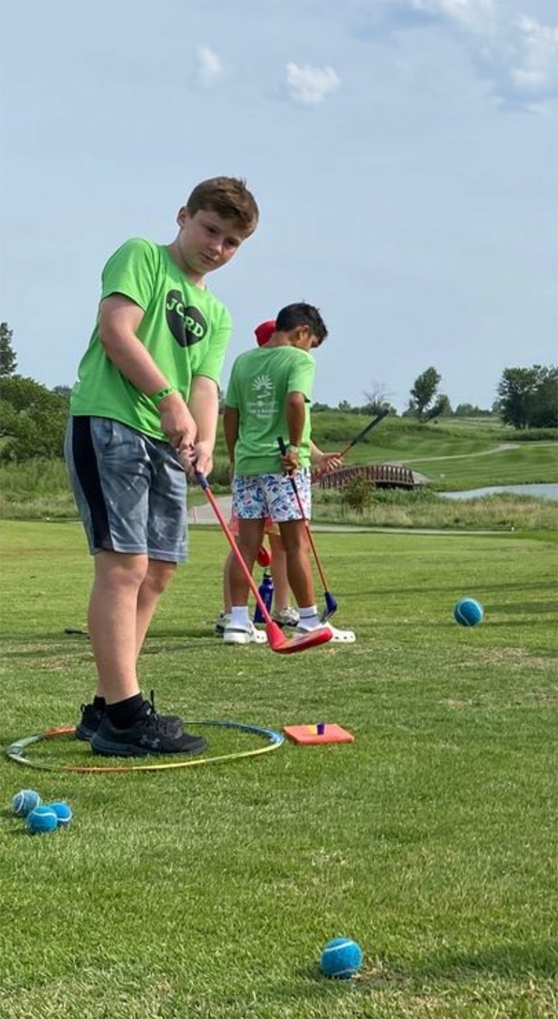 Young would-be golfers learned the basics of the game earlier this month at the Wee Links Golf Course at Heritage Park in Olathe. Photo via Instagram.