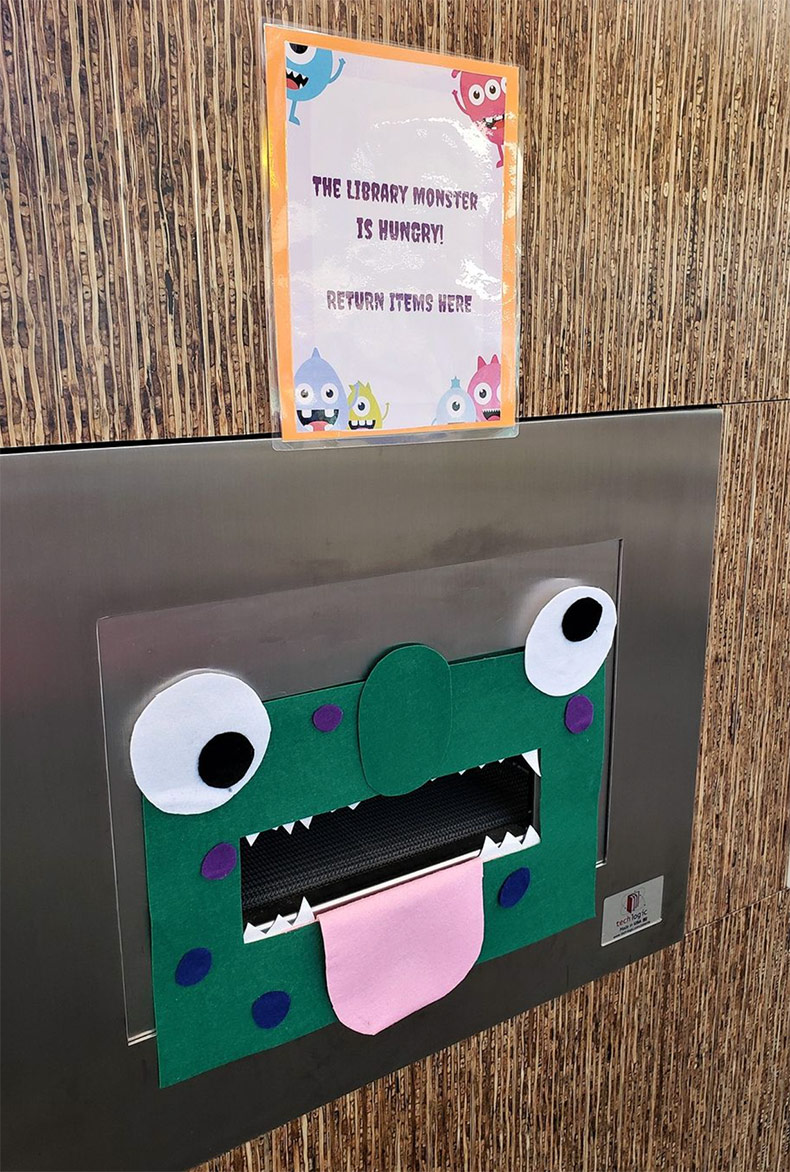 The “Library Monster” is back at Johnson County Library’s Monticello branch in Shawnee. Photo via Instagram.