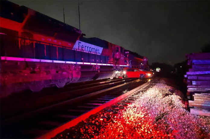 Recorded radio traffic states that the woman’s vehicle was stuck on the tracks when it was hit by a northbound train. The woman was in the driver’s seat with the car’s engine still running when it was hit.